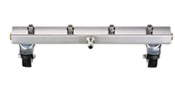 13 inch undercar cleaner for hot and cold water power washer with 4 nozzles and 2 casters.